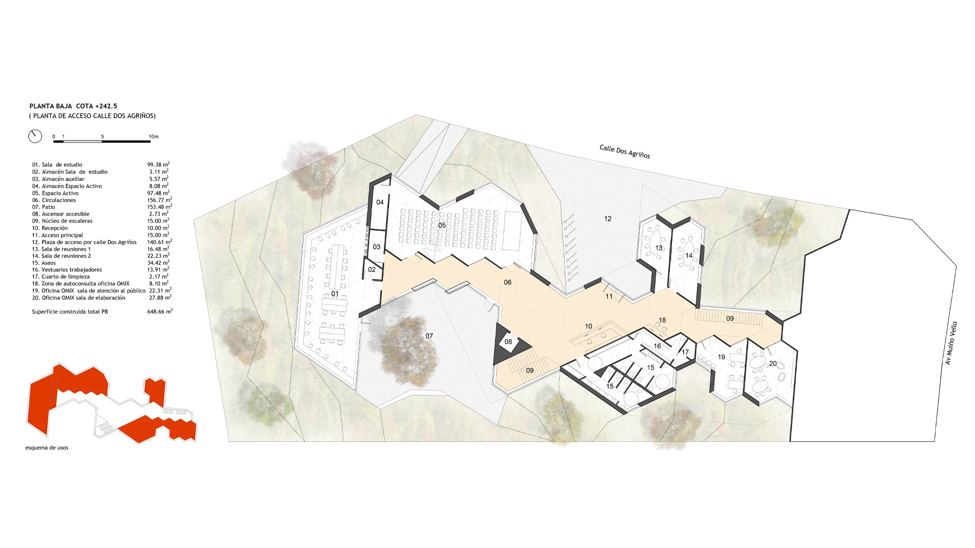 Otros edificios como el que estamos tratando tienen difícil transmitir el concepto de identidad más allá de un edificio de uso público, en cambio sí debemos transmitir otro tipo de conceptos que ayuden a completar el uso final del edificio.